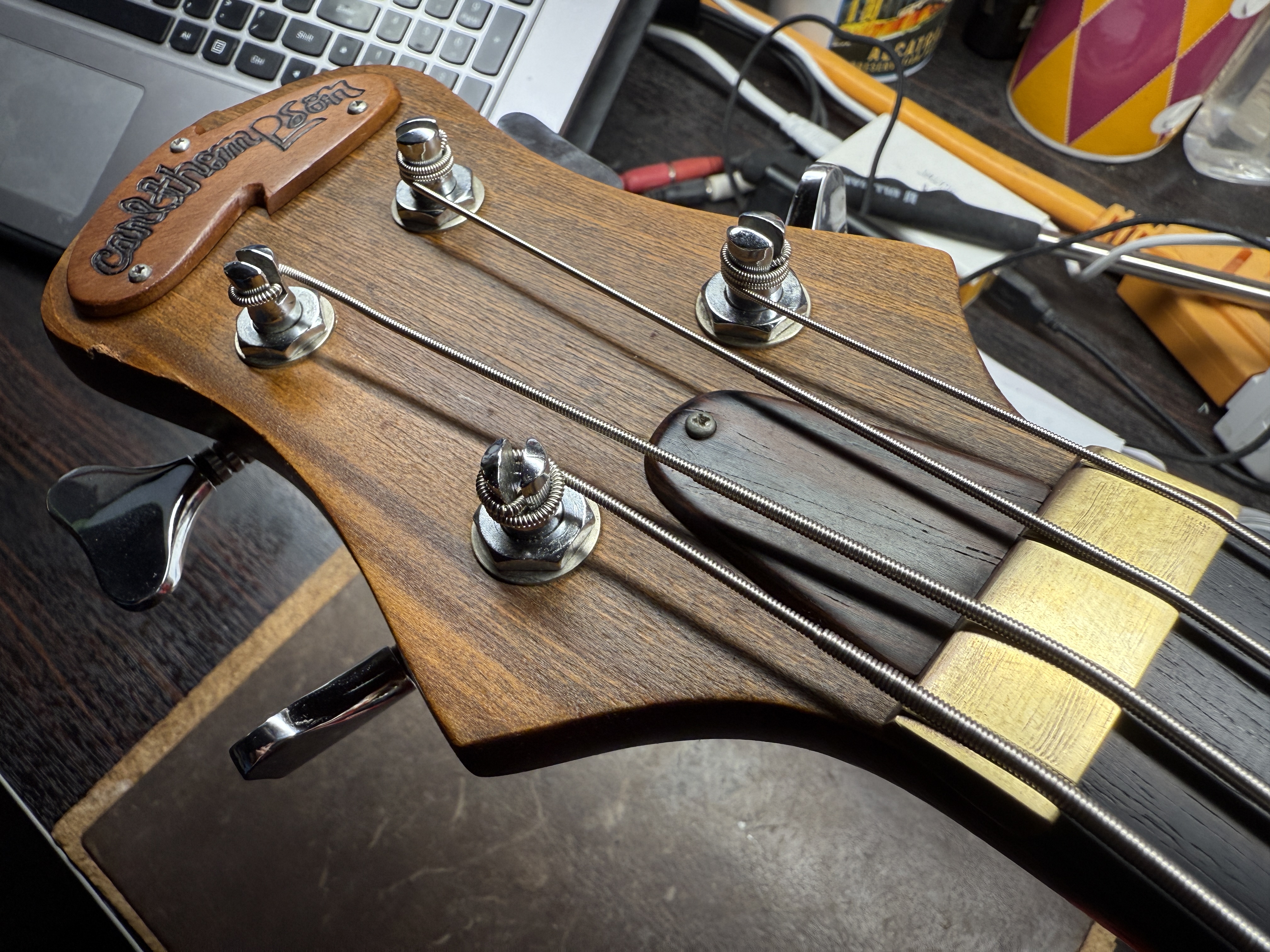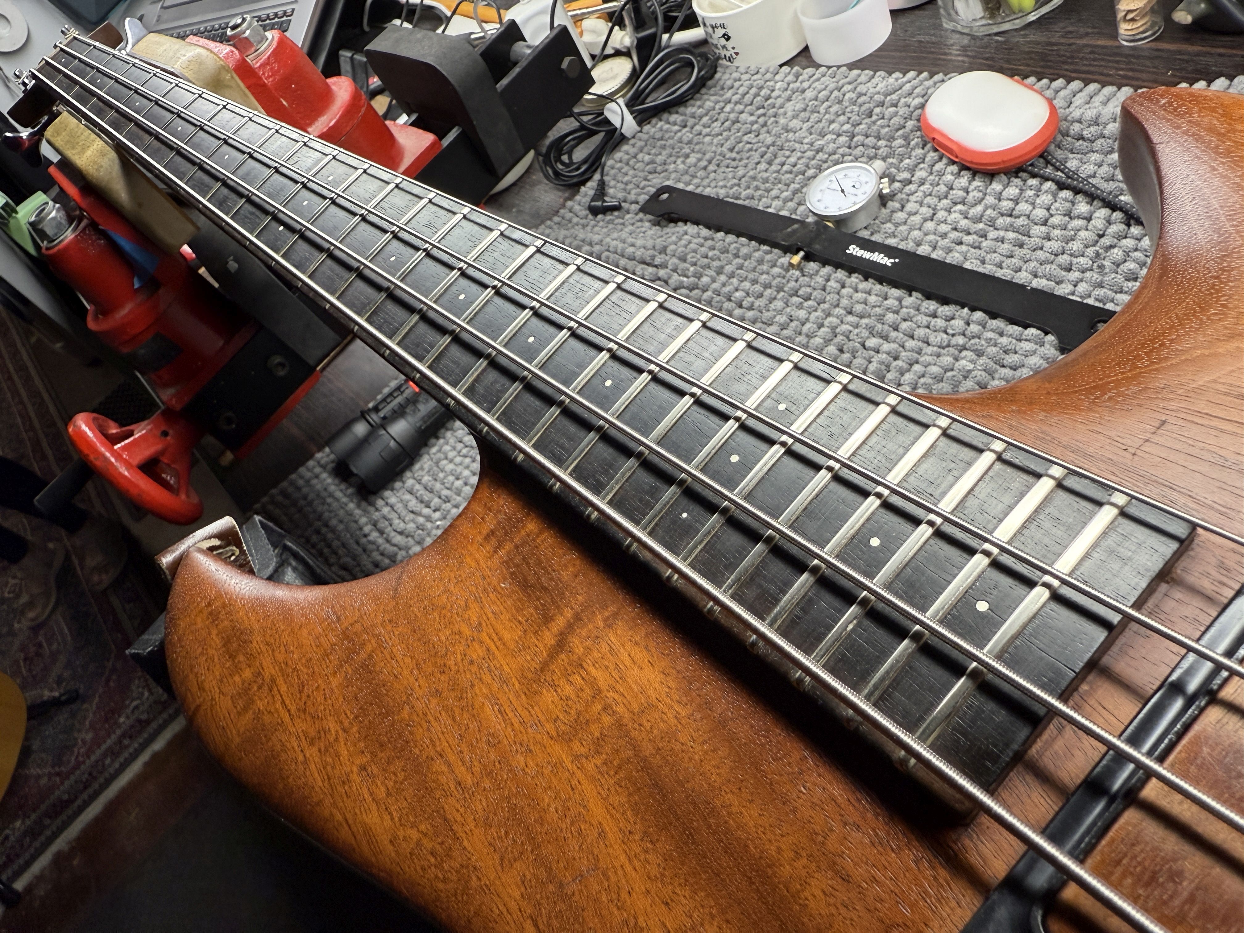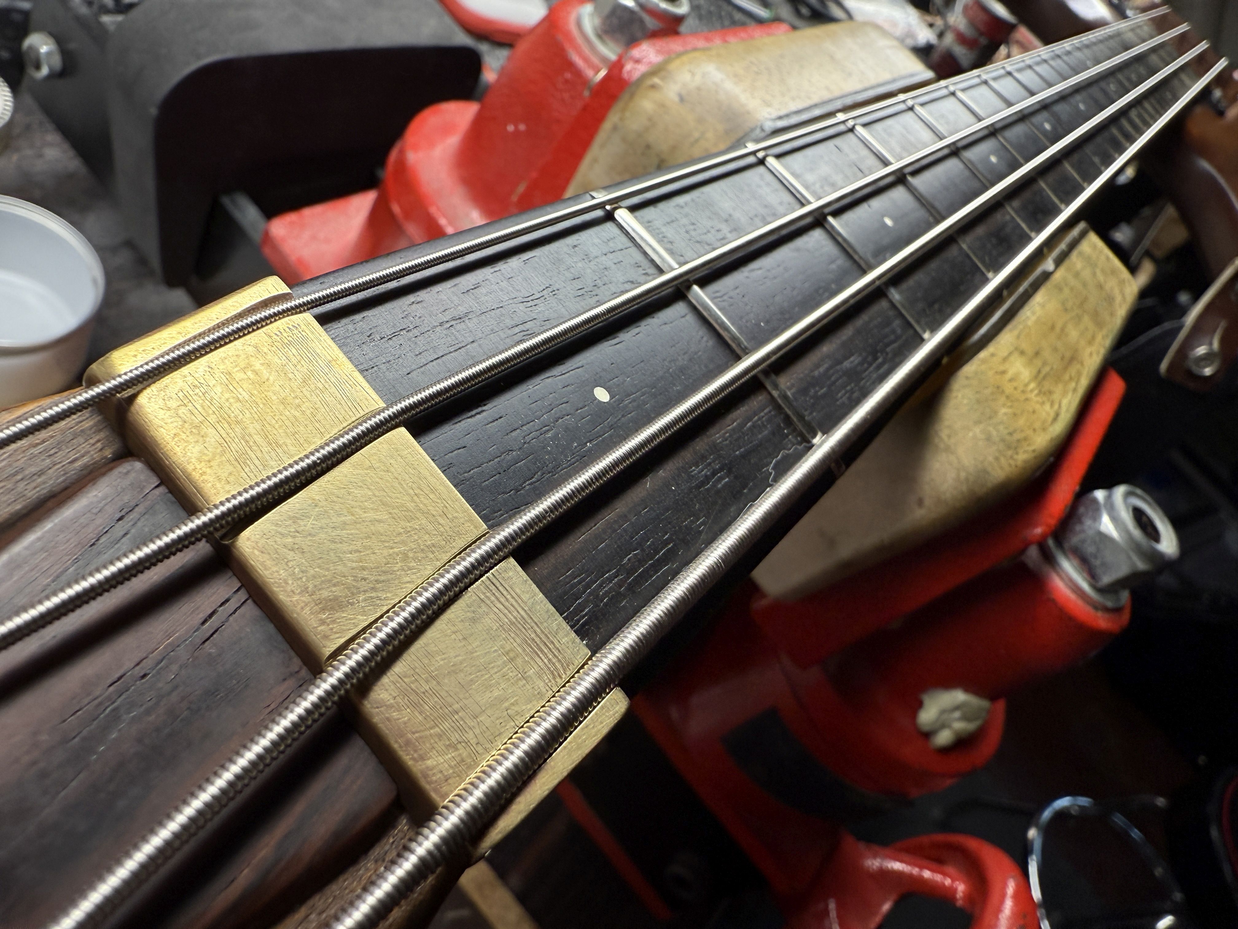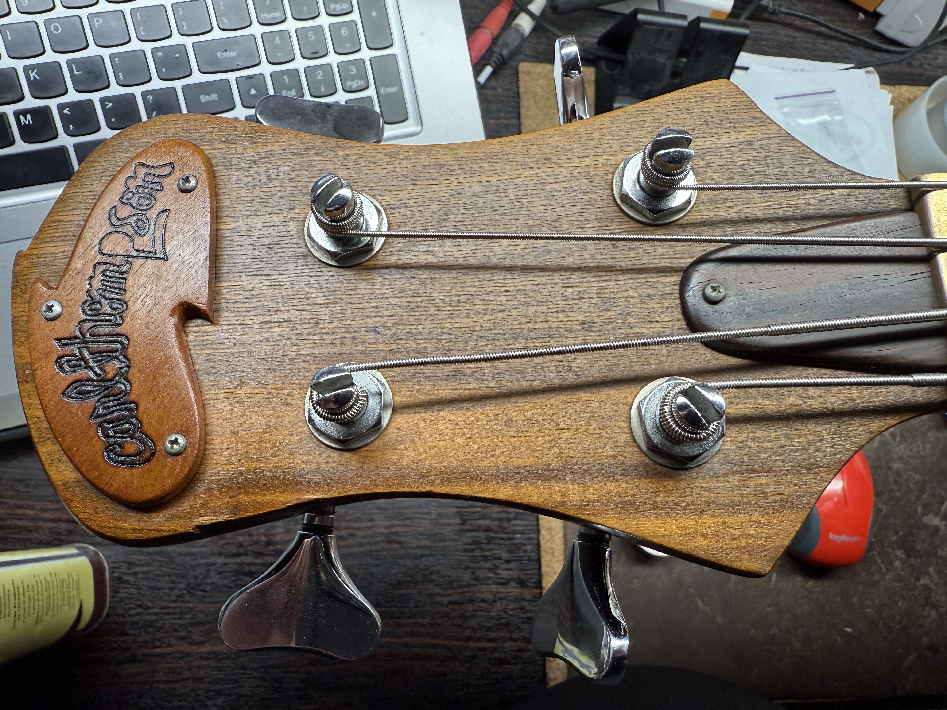 Mariano sent the bass to Carl who refurbished it and replaced the neck, and upgrading the tuners and bridge.