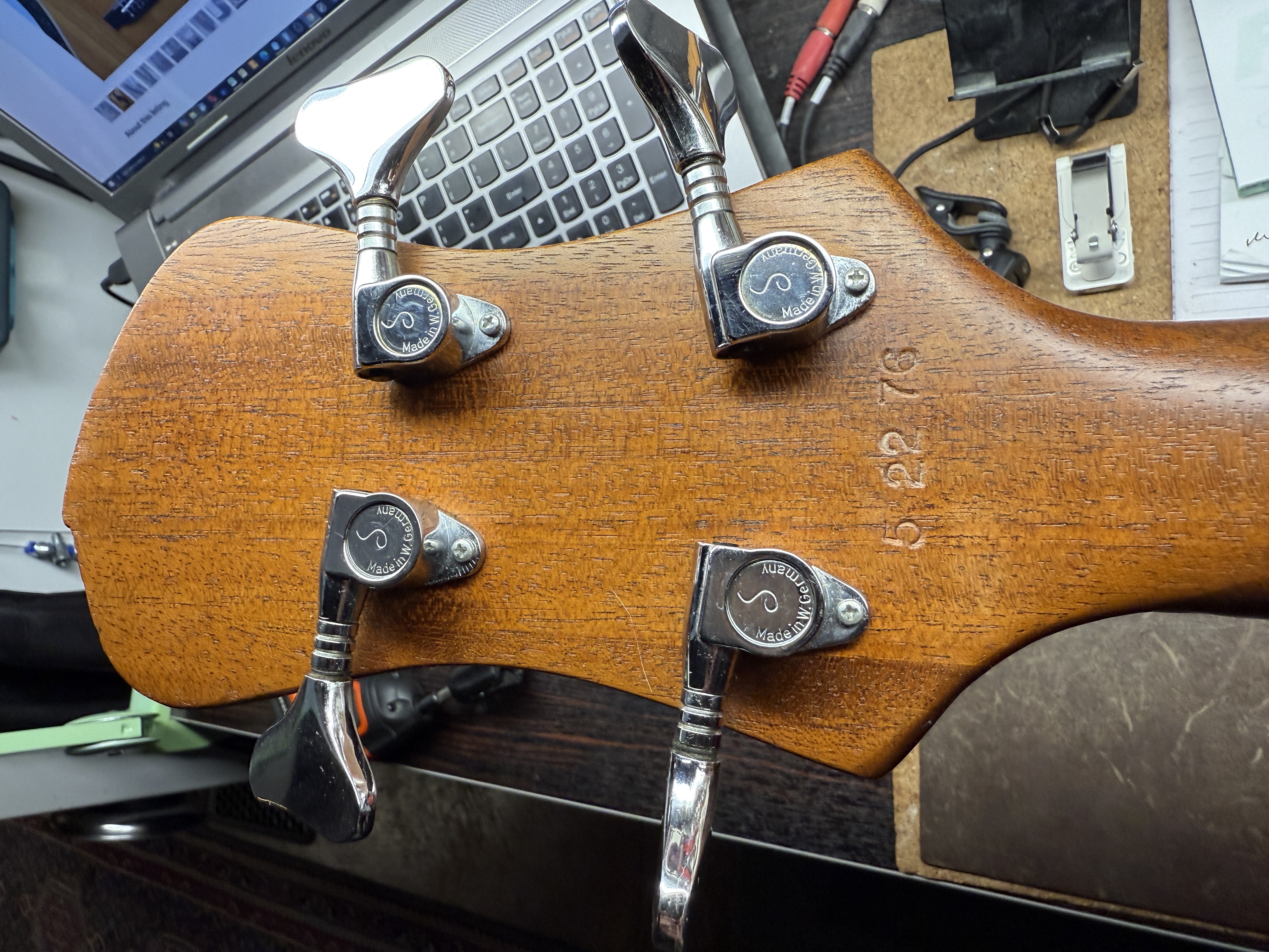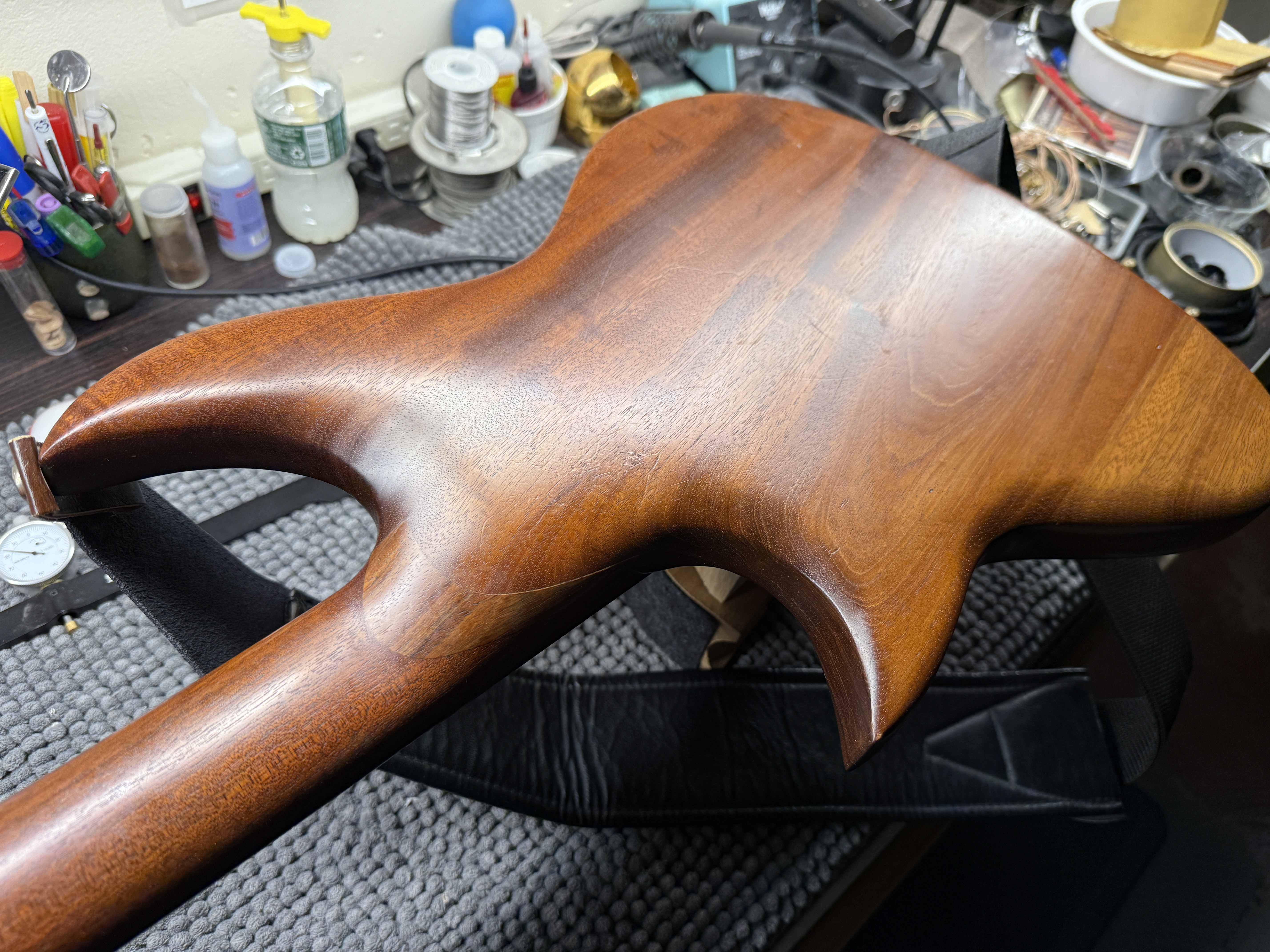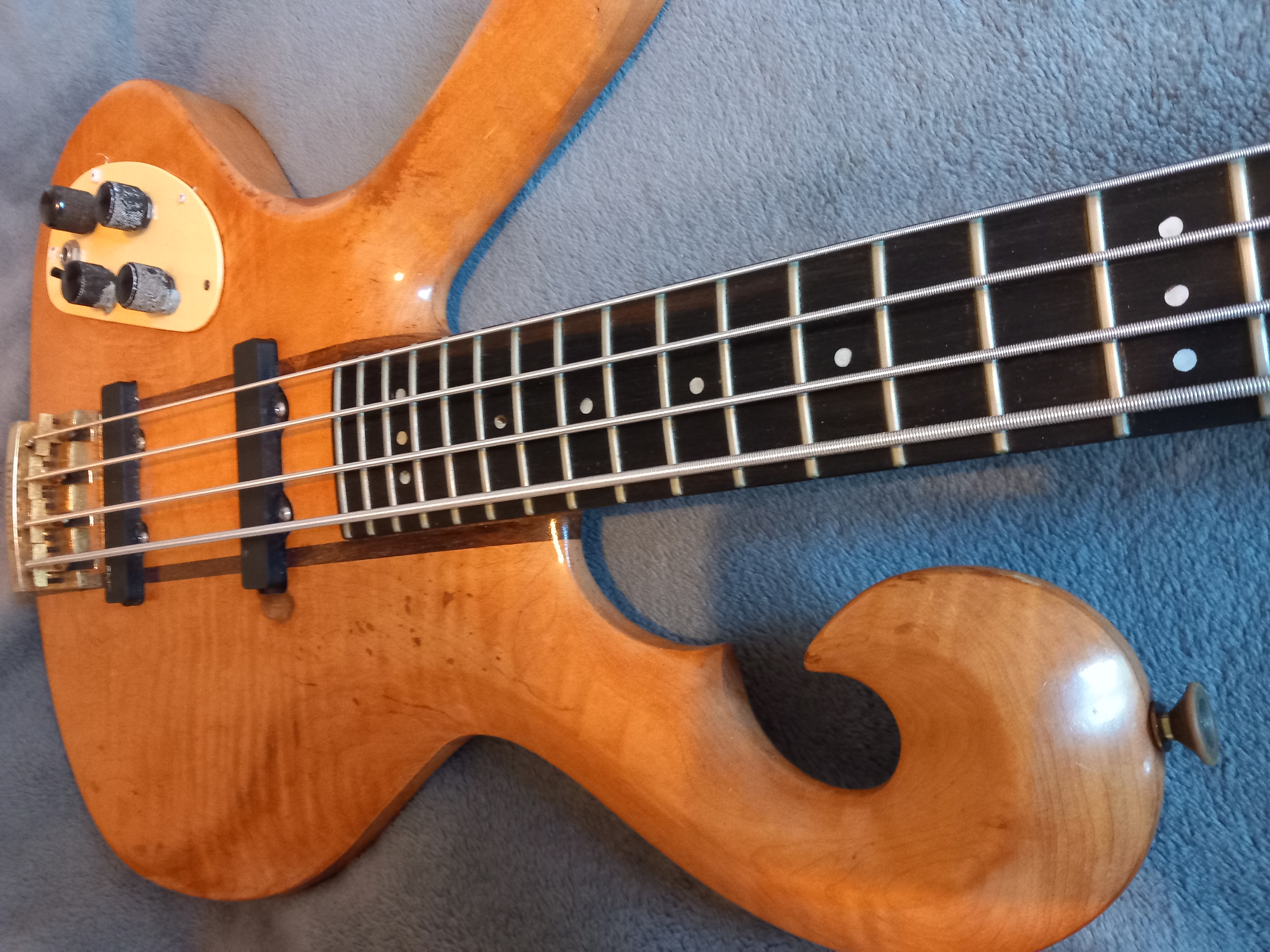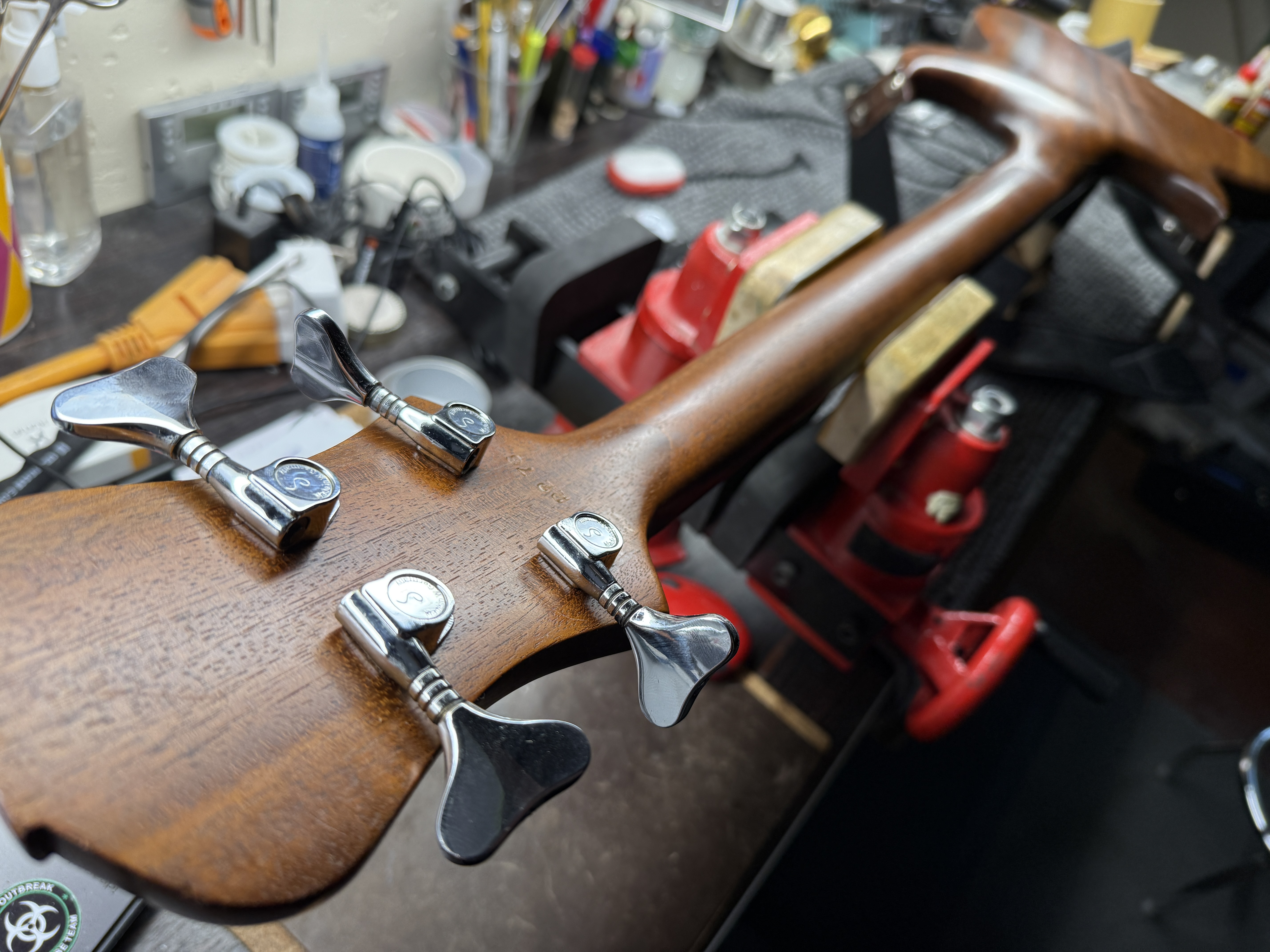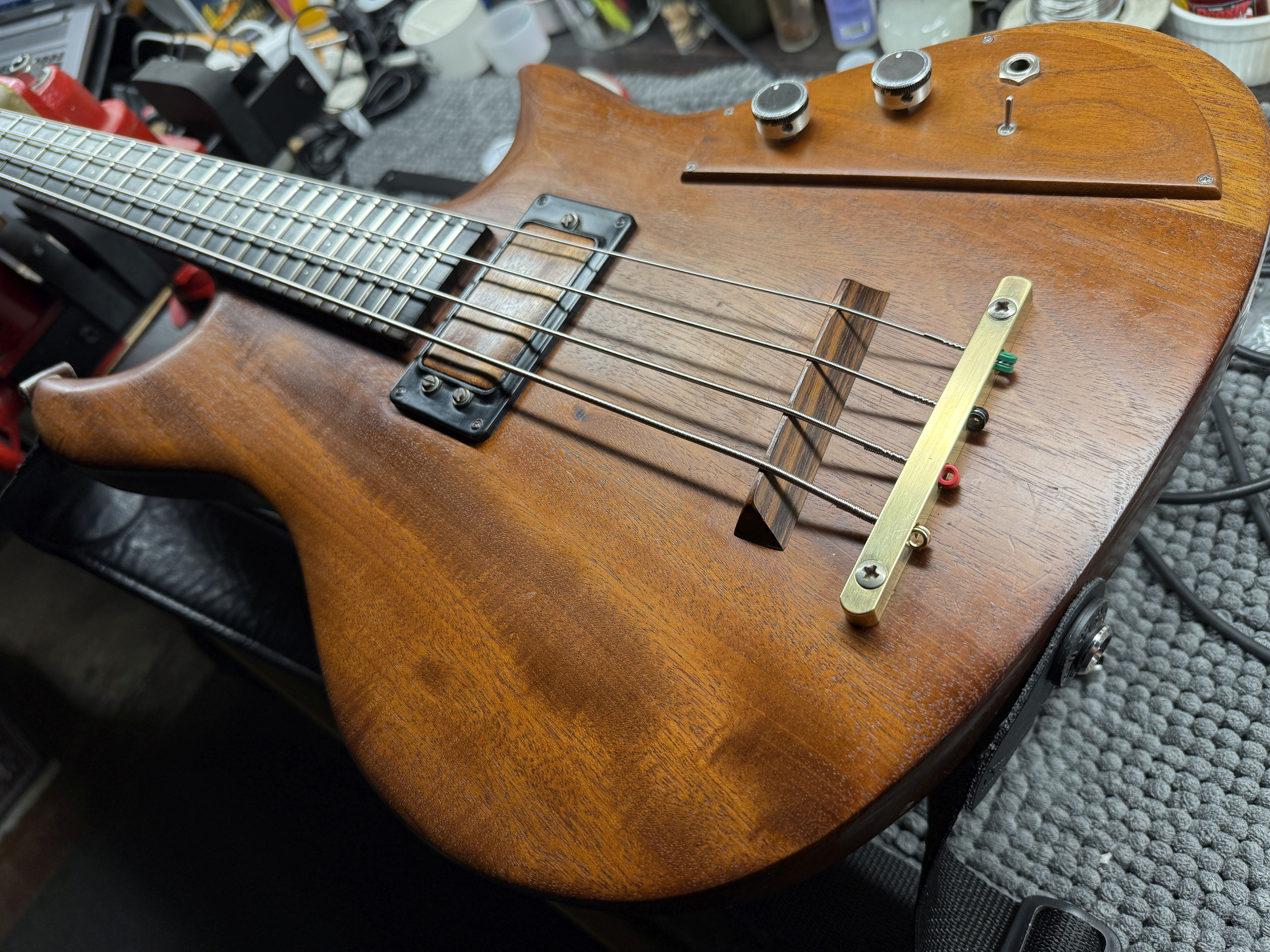 Mariano sent the bass to Carl who refurbished it and replaced the neck, and upgrading the tuners and bridge.