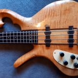 It was originally spec’ed as a Walnut ‘Cranshaw’ body bass, maple neck with ebony heel, adjustable bridge, 29 frets and on/off switch’.