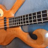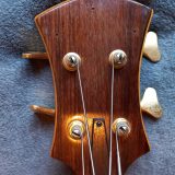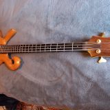 Here’s the eBay description: “Mint! Looks new! Unplayed! Not a scratch! No fretwear! Serial # 91176, (Sep. 11 ’76) Koa, Bubinga, or Ovangkol body. Body is essentially 1-piece, the only lamination being a tiny piece on one side, I guess the piece of wood was just a 1/4″ shy of the size Carl needed. Mahogany neck w. Rosewood or Cocabola fingerboard. Typical CT oil finish. Schaller tuners, Badass 1 bridge. Passive electronics, (tone control is a little scratchy, sealed pots so I can’t spray it out, no big deal) 100% stock, straight neck, excellent action, works fine, 3-way coil split/series-parallel switch. NO cracks, repairs, or problems. 29, YES, 29, frets! Woodburned logo. Has the famed CT warm, woody sound and organic playability. Inc. hardshell grey rug covered case. This is the third, COOLEST, and final Carl Thompson bass in the collection of a customer who’s consigned them to me.”