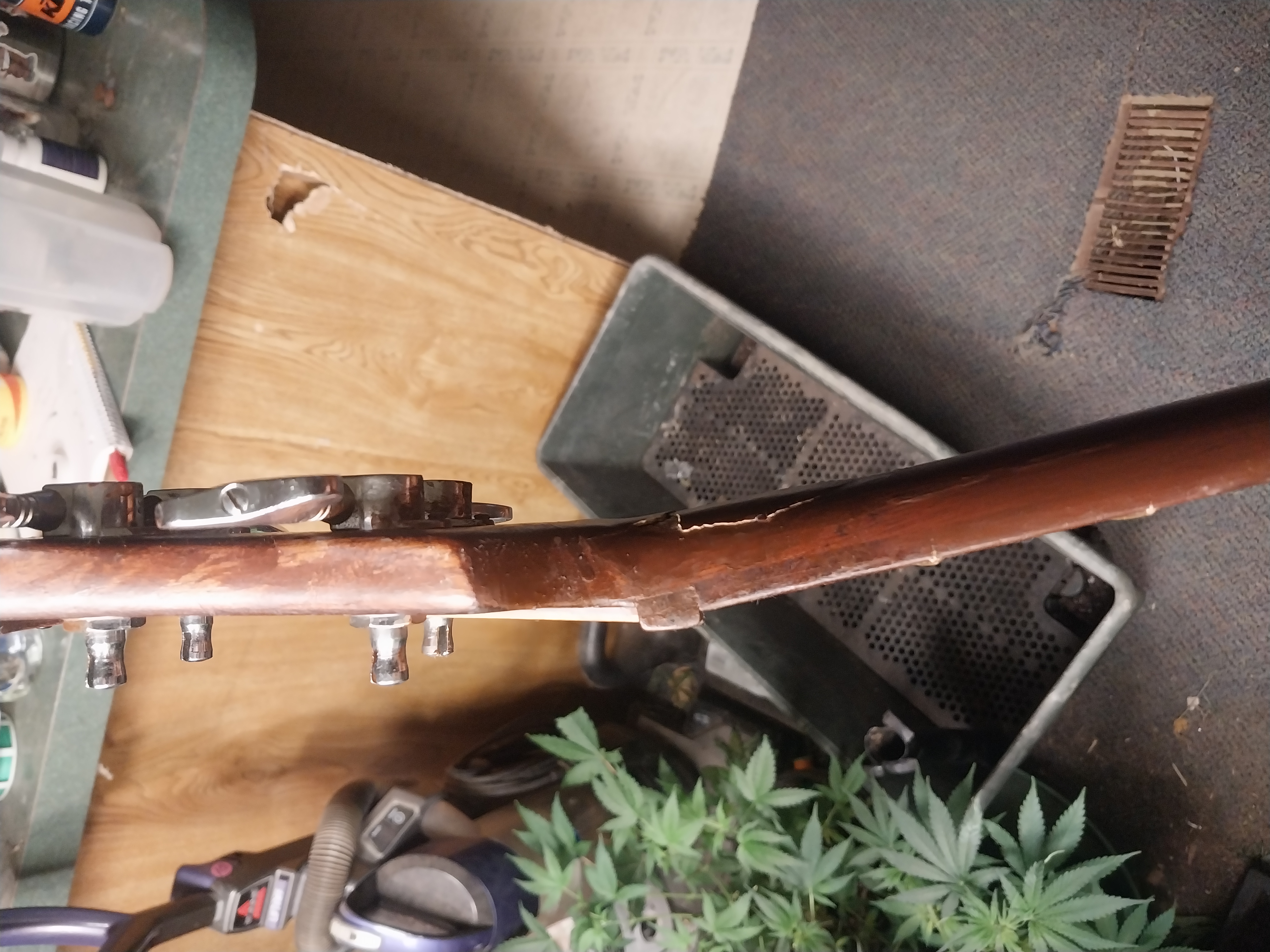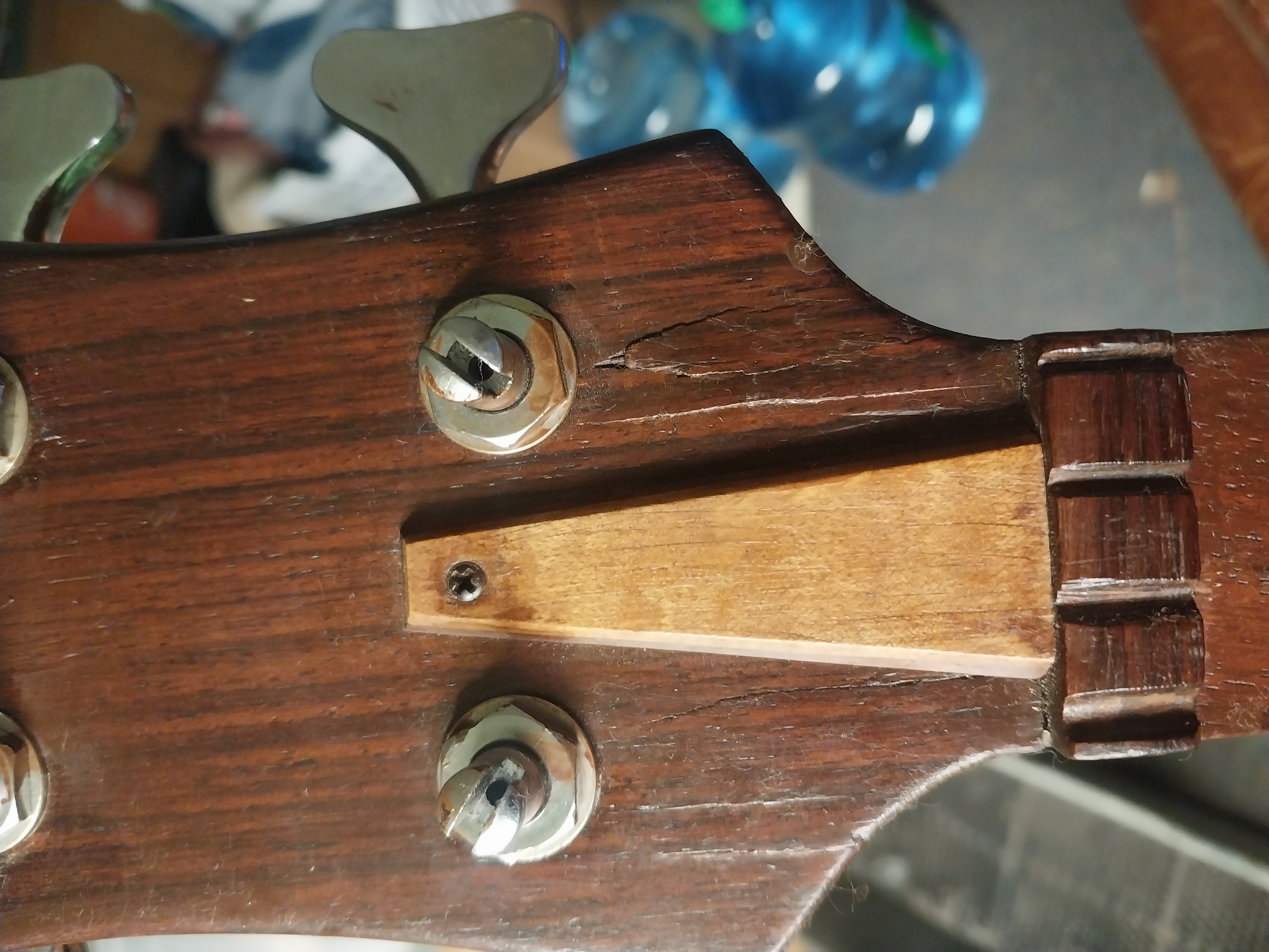 Around 1982/83 I had a bad accident with that bass, when it fell out of it’s stand landing face down flat on the floor, cracking the head piece (almost) off the neck. Believe me when I tell ya, I was on my knees crying when that happened. I thought it was over.