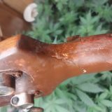 Carl then asked, if he could 600grit wire wool the bass, because after 30 years, the Walnut’s grain, had rose slightly, so Carl proceeded to Wirewool, re-oil, using Orange Oil, re-seated the