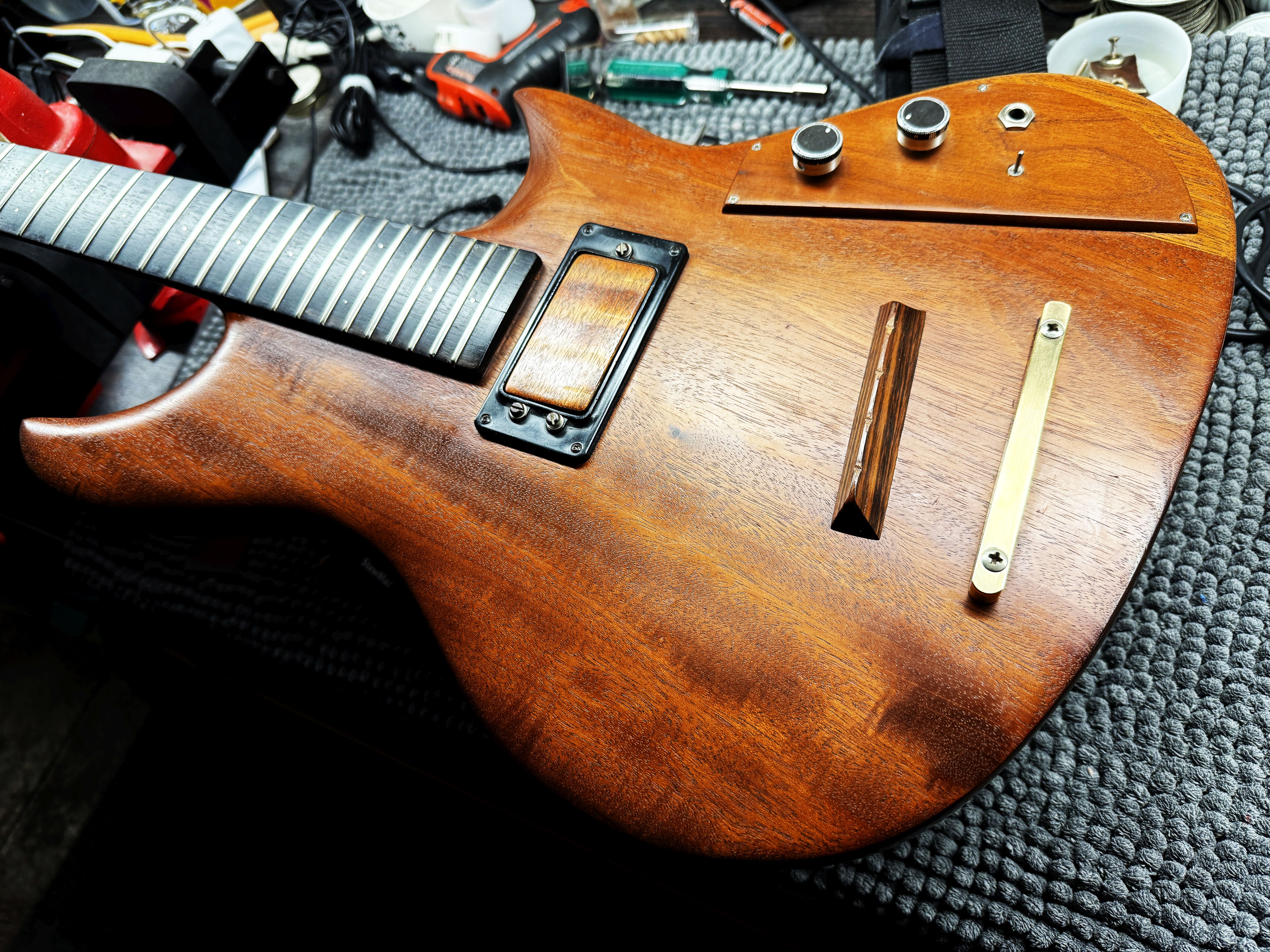 It was originally spec’ed as a mahogany body and neck, 29 frets and single pickup.