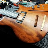 It has since been refurbished by Carl and converted to standard tuning. At the same time Carl replaced the tuning machines, bridge and swapped in a passive Kent Armstrong H4BE-3B ‘bridge’ pickup. Controls are volume and tone with an on/100nF tone/off switch. Weight is 3601g / 7.93lbs.
