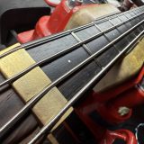 PJ bought the bass and asked Carl to refurbish it. He reduced the number of frets to 24 and added a second NOS Schaller 10/404 pickup and Kent Armstrong MM3 3-band active preamp with volume, blend, middle, stacked treble/bass controls and an on/passive/off switch. The bass has a 1-9/16” wood nut. Weight is 3617g / 7.97lbs.