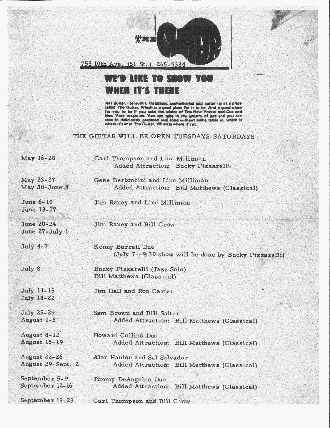 Carl gigging at Ecco Italia with a handfull of friends including Bob Dorough and Stever Berger.