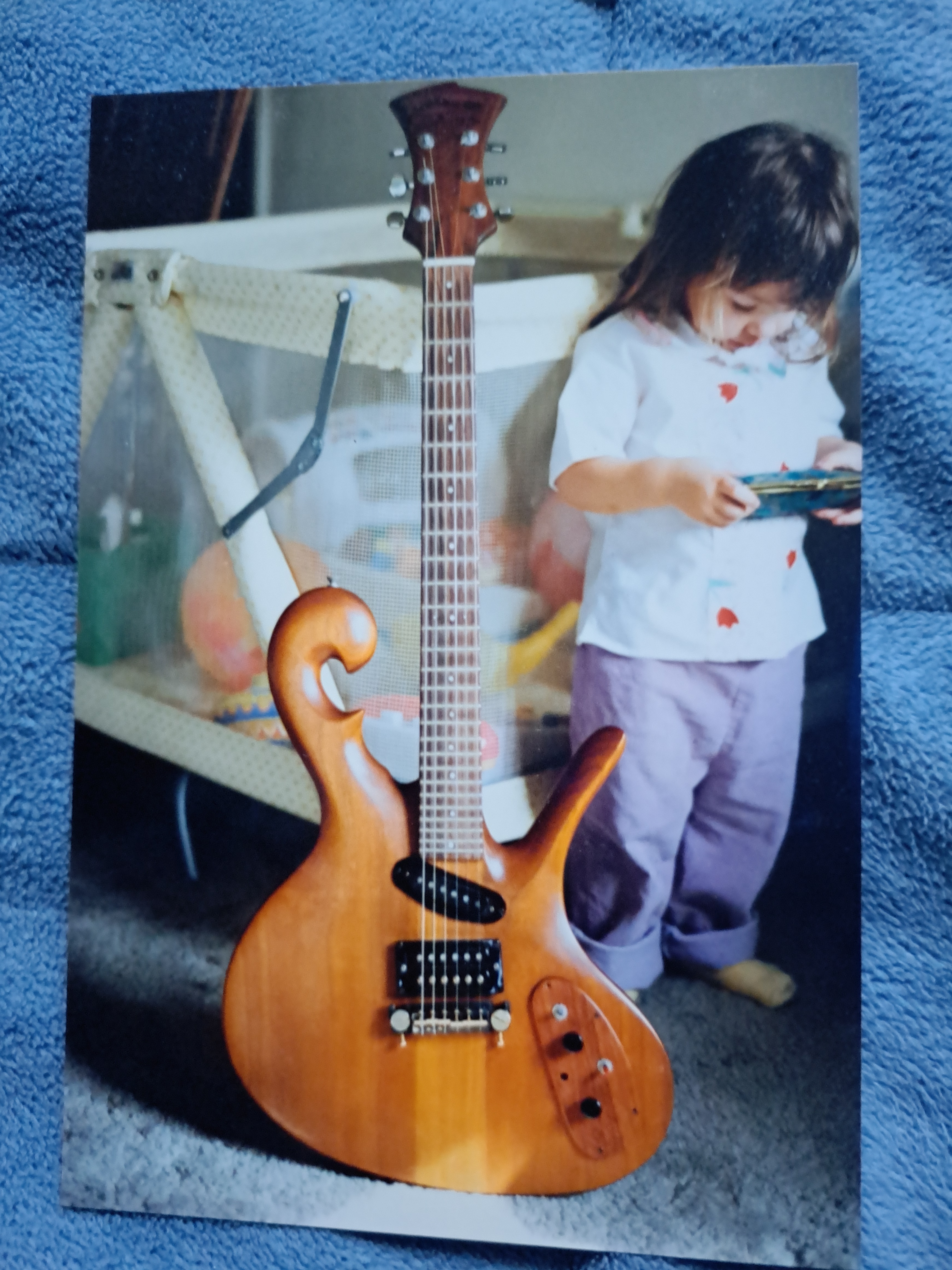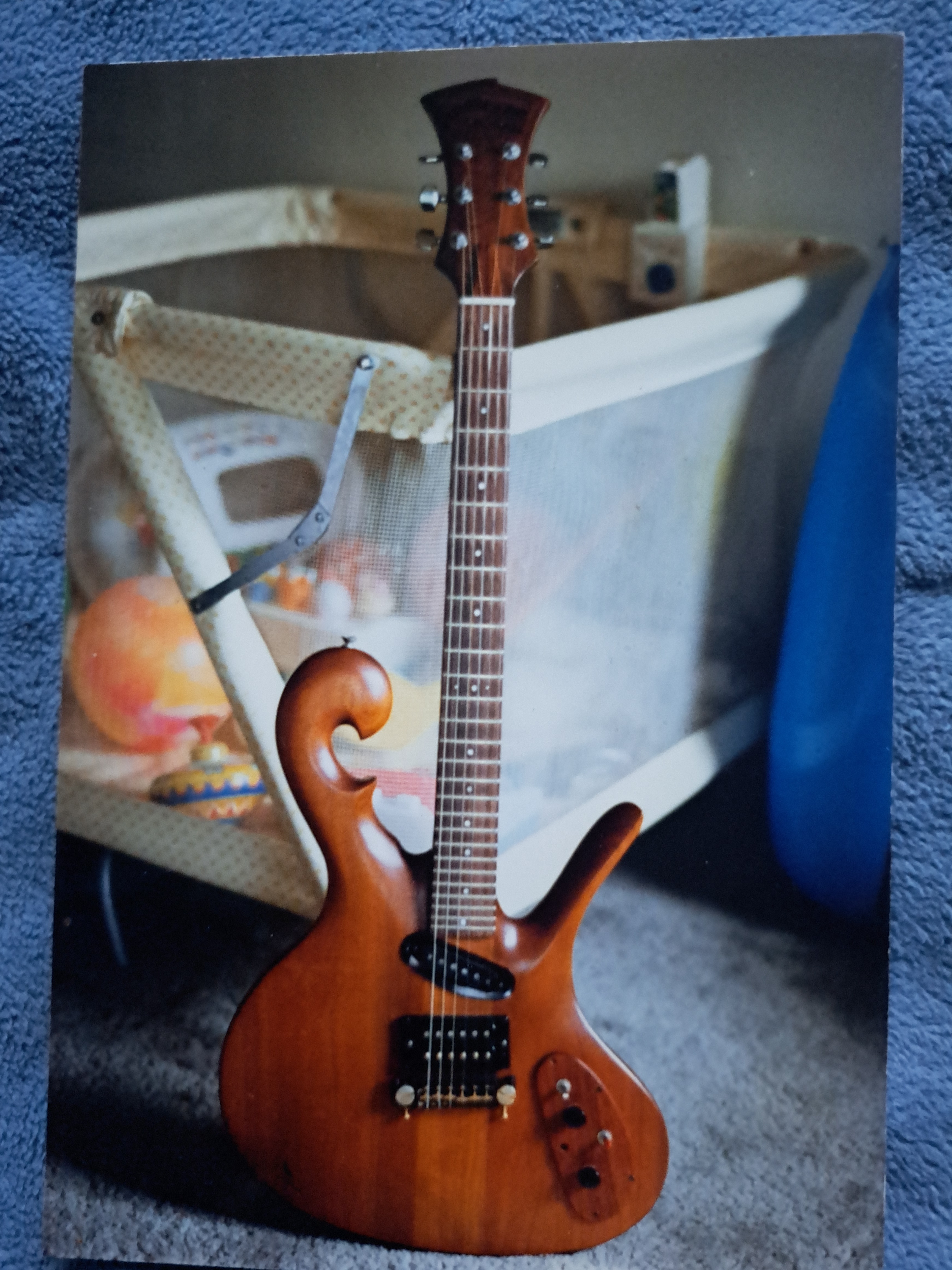 The guitar was originally sold on consignment through Stuyvesant Music and was spec’ed with a maple body and neck, 27 frets, rosewood fingerboard and single pickup.