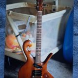 signature ‘football’ carved jack plates. Tuners are hipshots and the bridge is a gold plated tuneamatic style. Tailpiece is one